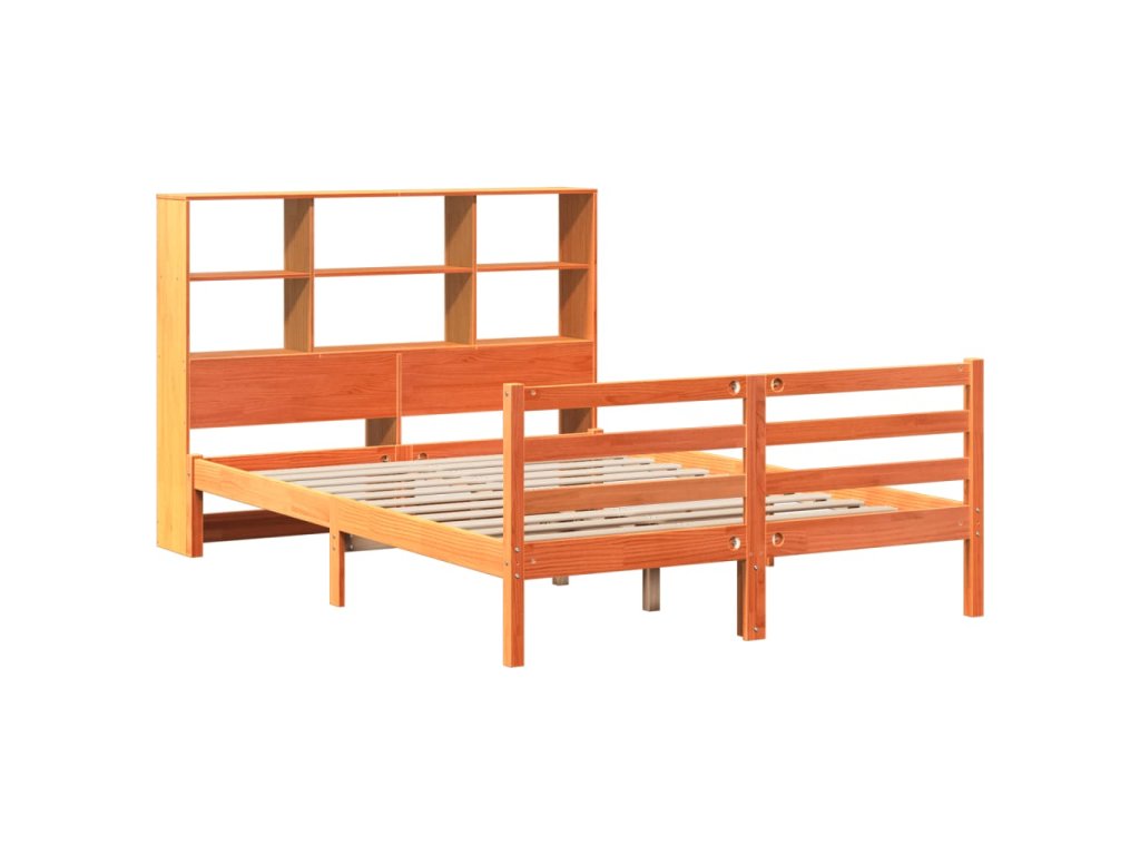 Postel s knihovnou bez matrace hnědá 135 x 190 cm masivní dřevo 3321912