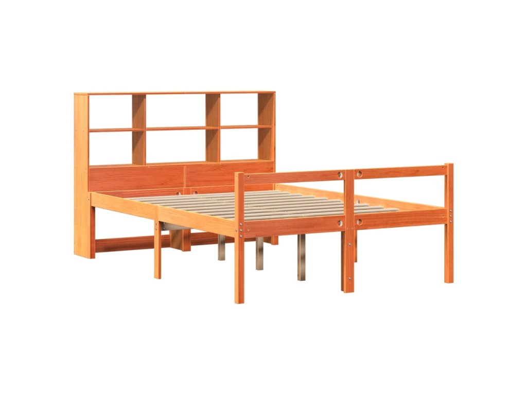 Postel s knihovnou bez matrace hnědá 135 x 190 cm masivní dřevo 3322029