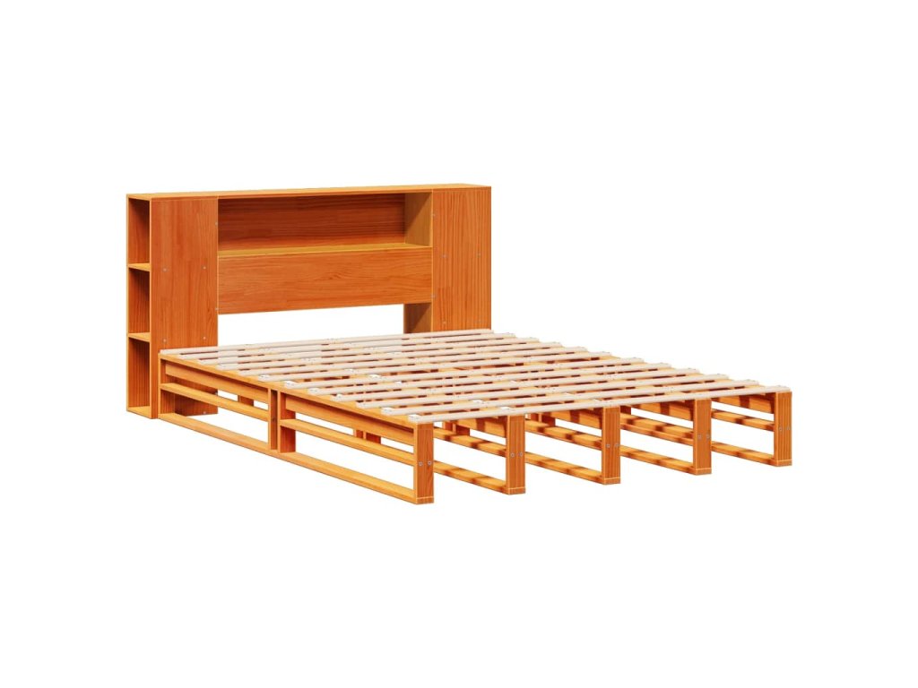 Postel s knihovnou bez matrace hnědá 135 x 190 cm masivní dřevo 3323895