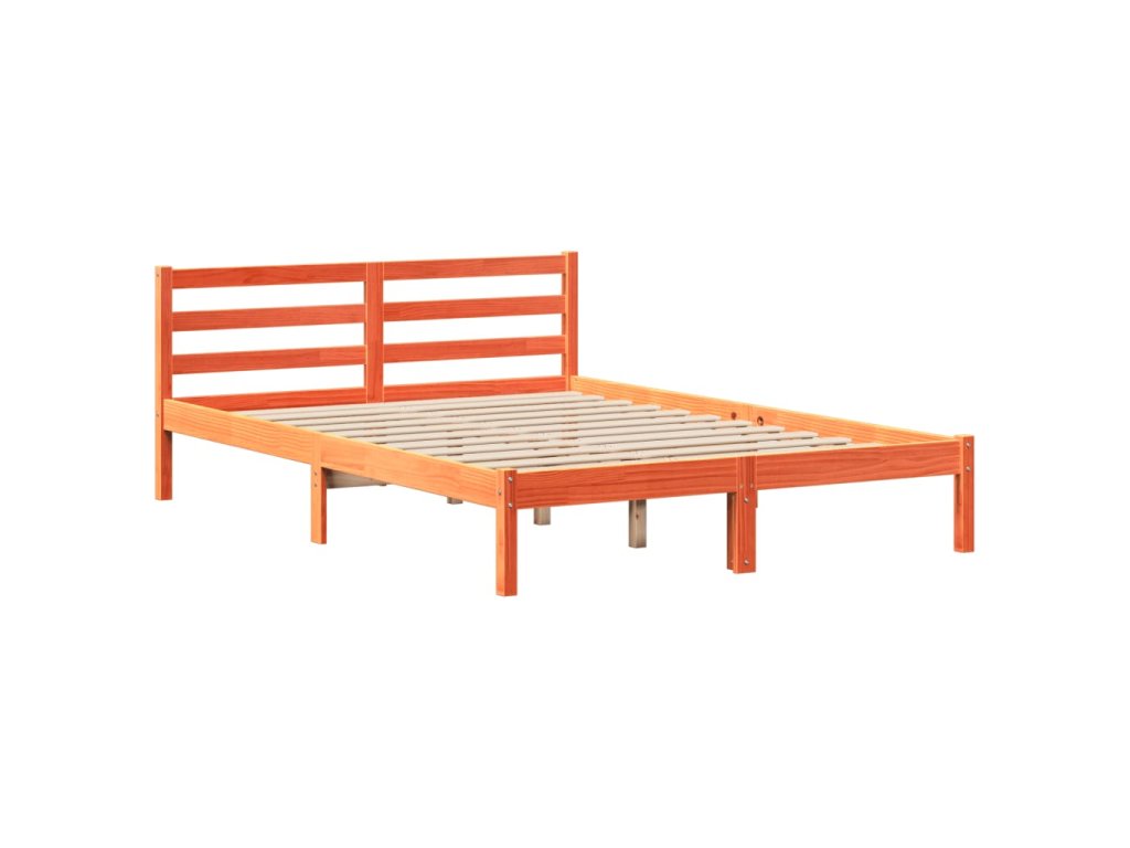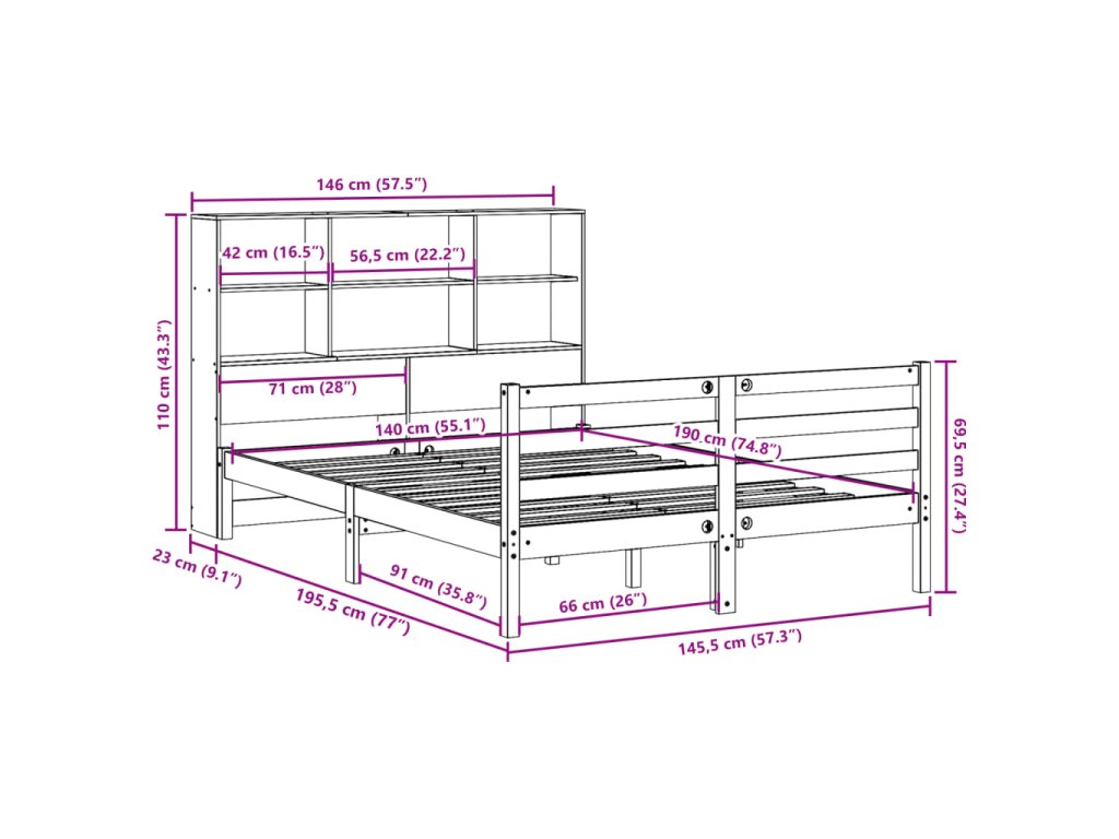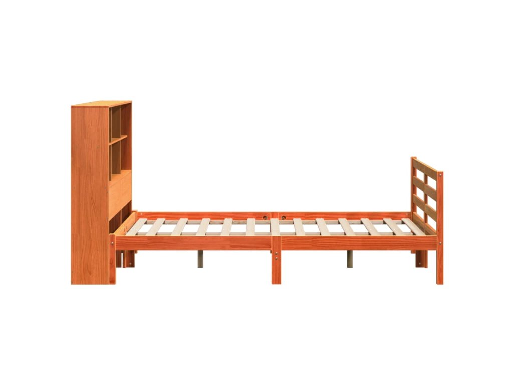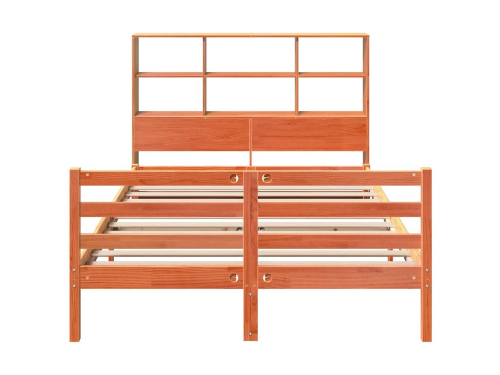 Postel s knihovnou bez matrace hnědá 140 x 190 cm masivní dřevo 3321913