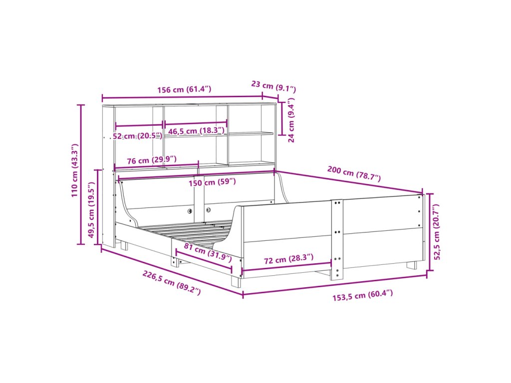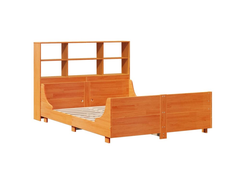 Postel s knihovnou bez matrace hnědá 150 x 200 cm masivní dřevo 3323805