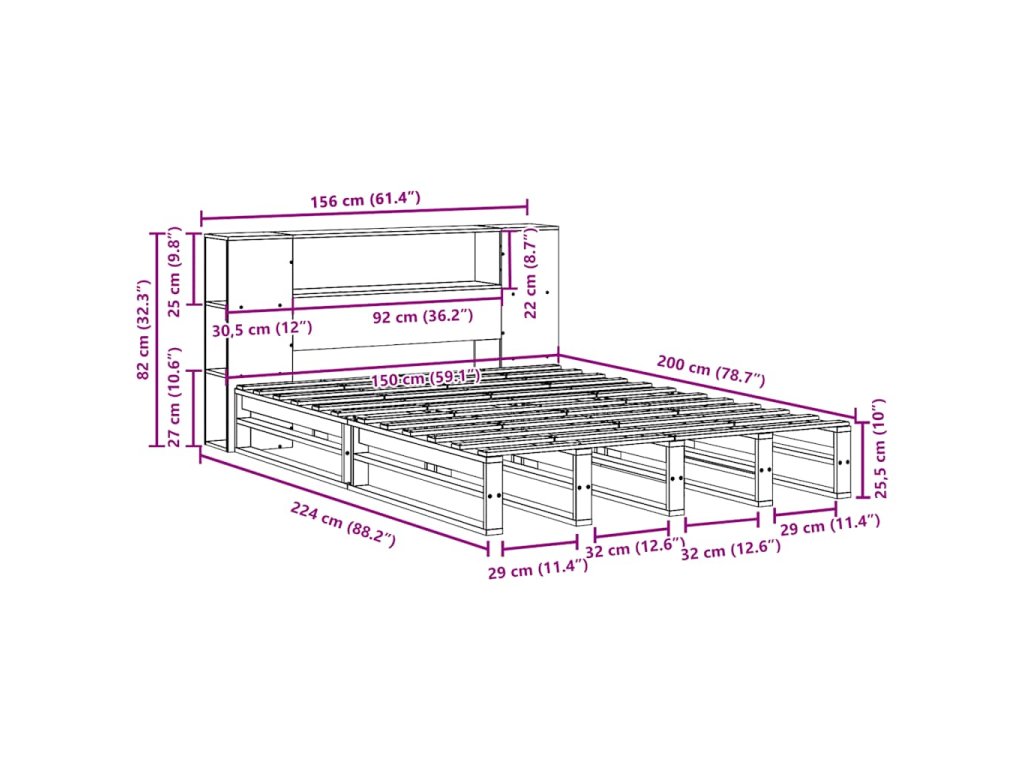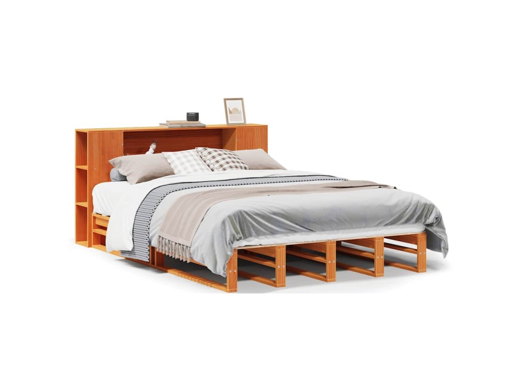 Postel s knihovnou bez matrace hnědá 150 x 200 cm masivní dřevo 3323880