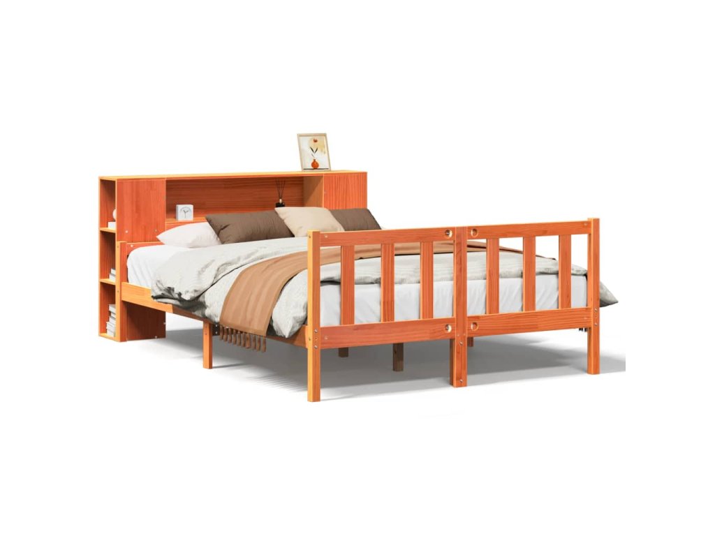 Postel s knihovnou bez matrace hnědá 160 x 200 cm masivní dřevo 3322102