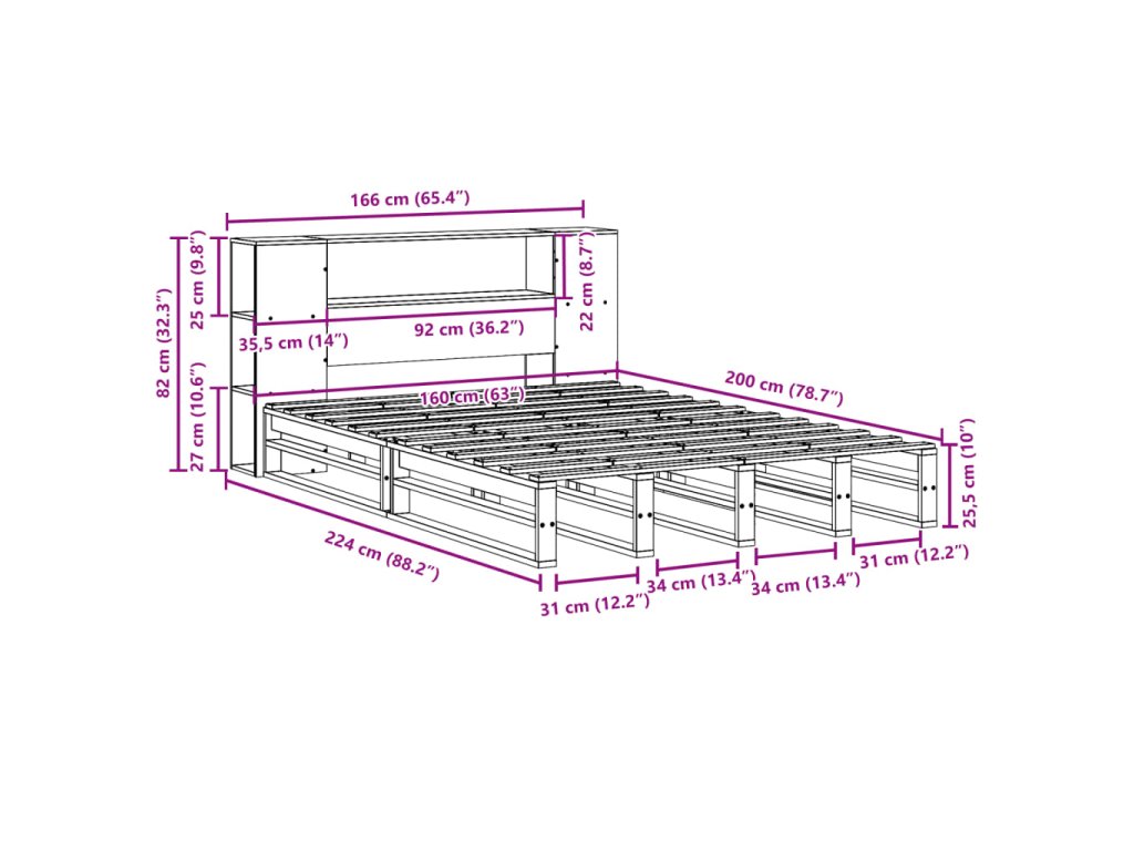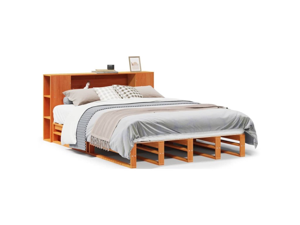 Postel s knihovnou bez matrace hnědá 160 x 200 cm masivní dřevo 3323883