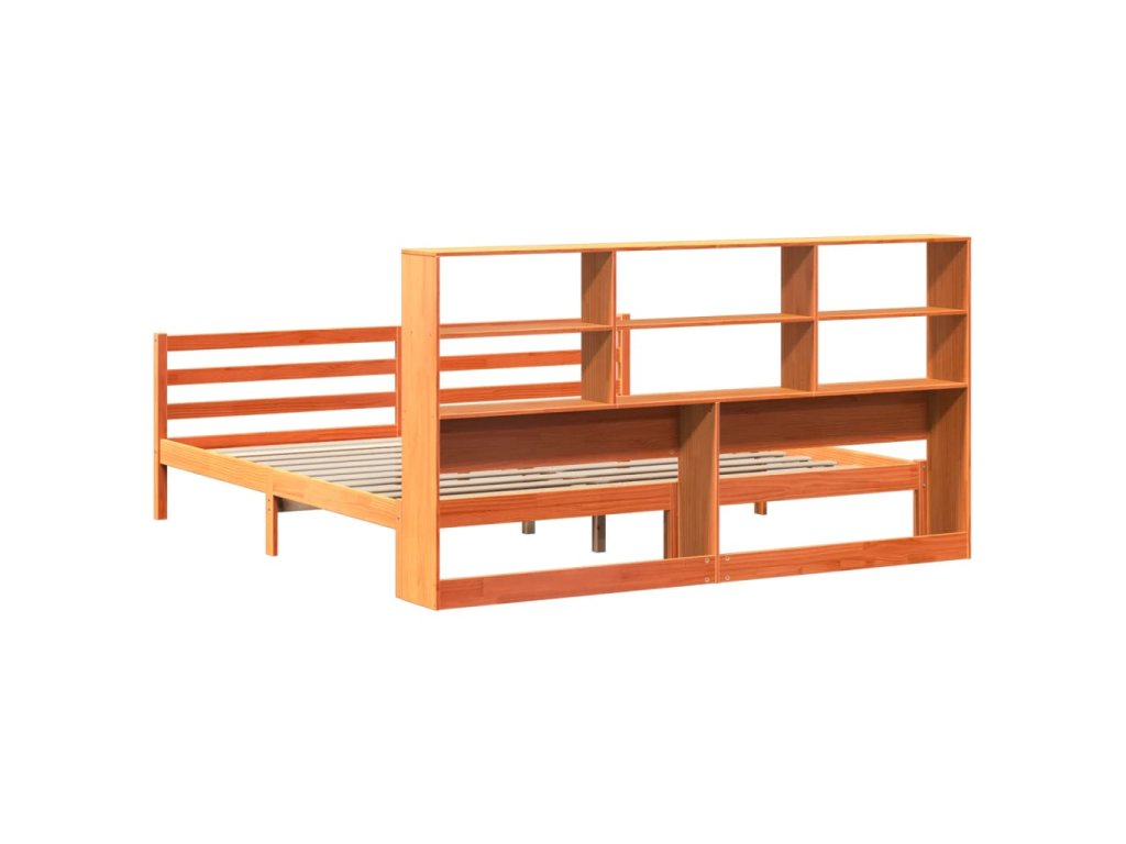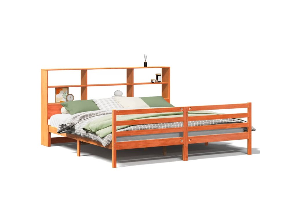 Postel s knihovnou bez matrace hnědá 180 x 200 cm masivní dřevo 3321920