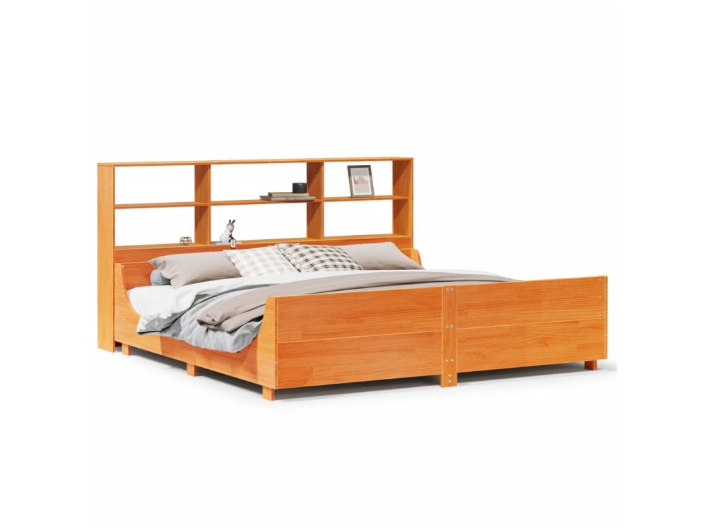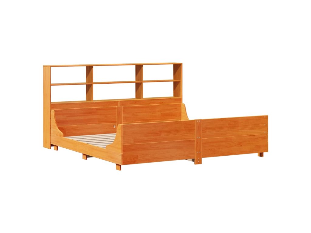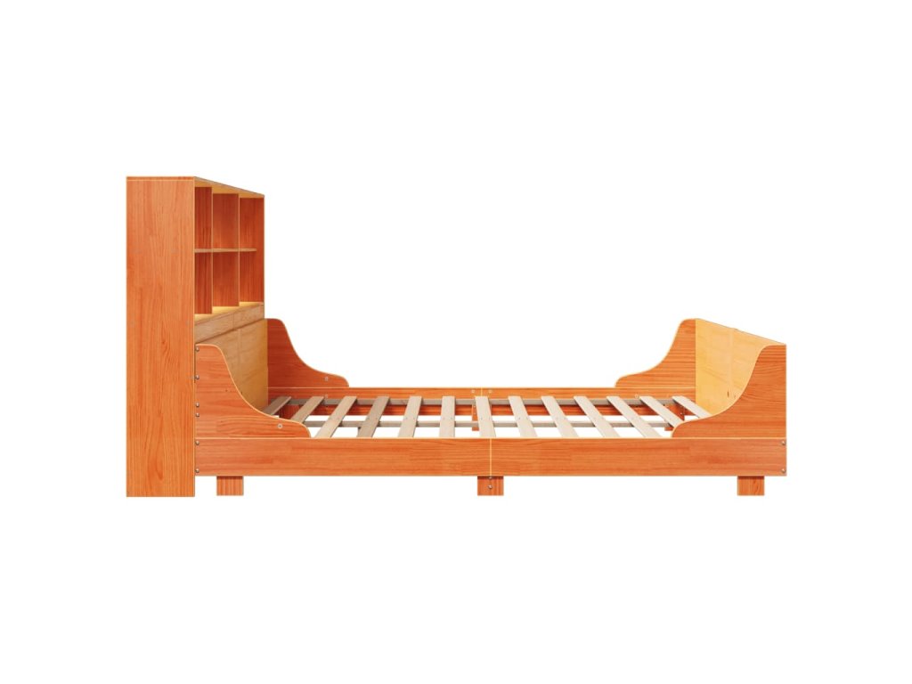 Postel s knihovnou bez matrace hnědá 180 x 200 cm masivní dřevo 3323799