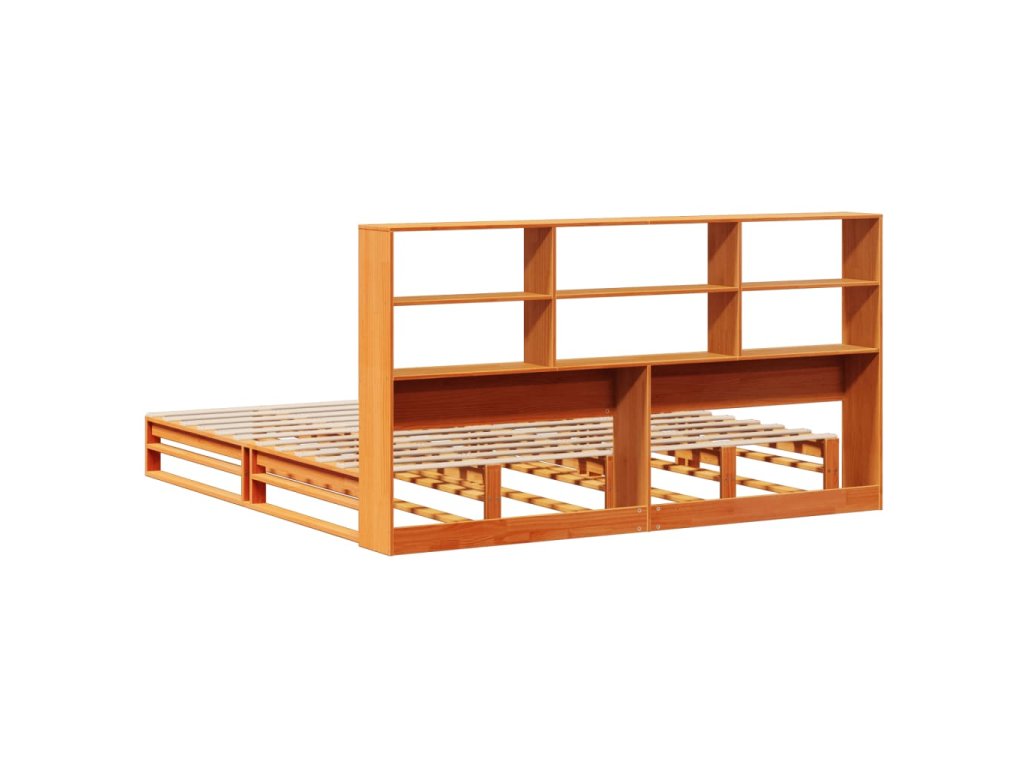 Postel s knihovnou bez matrace hnědá 180 x 200 cm masivní dřevo 3323931