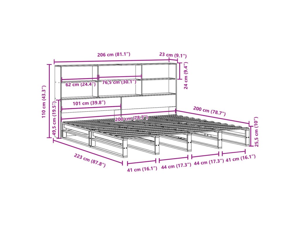- Rozměry: 206 x 23 x 110 cm (Š x H x V)