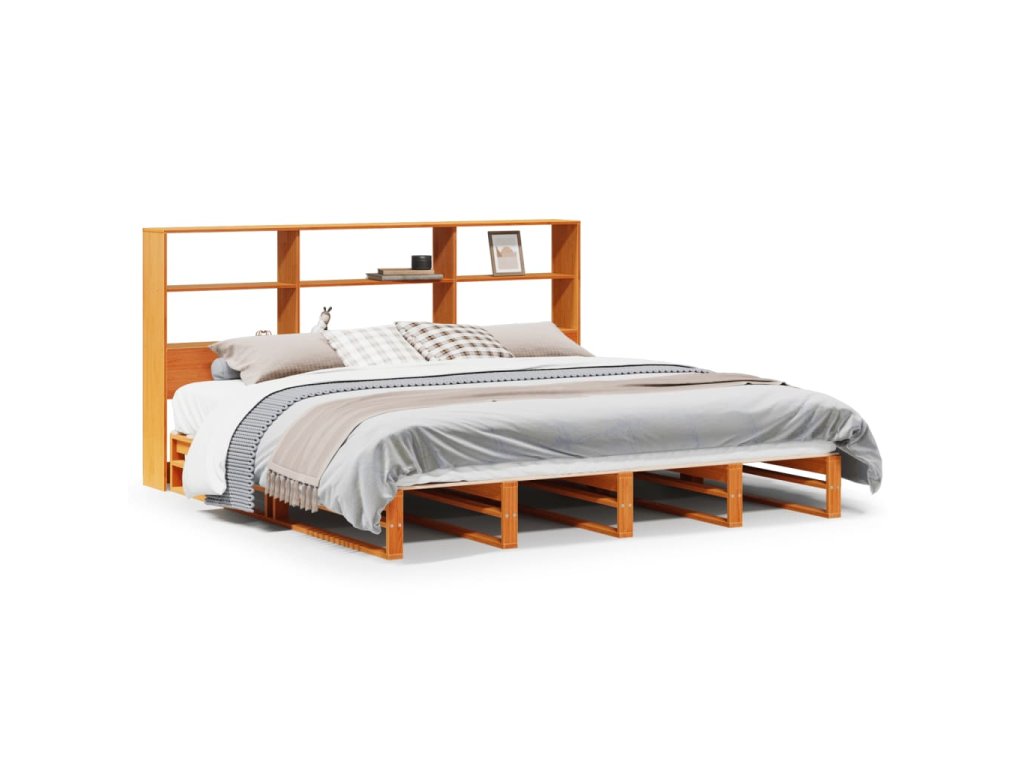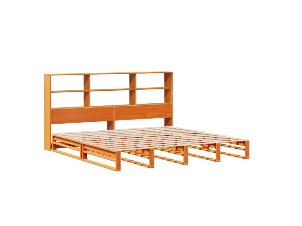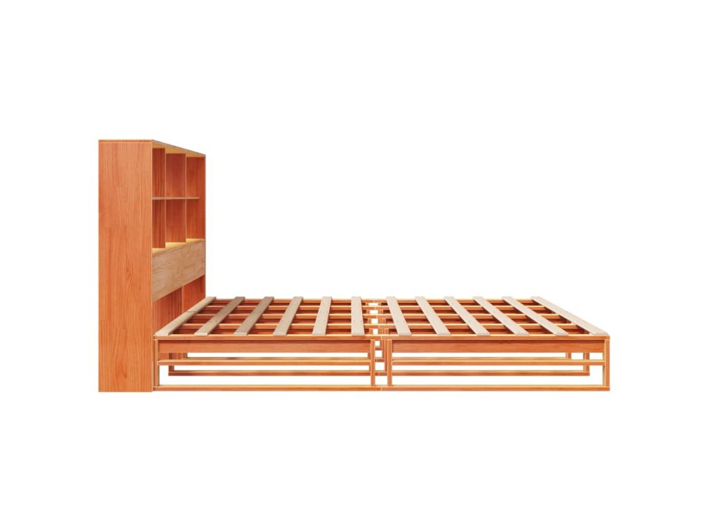 Postel s knihovnou bez matrace hnědá 200 x 200 cm masivní dřevo 3323934