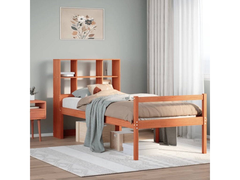 Postel s knihovnou bez matrace hnědá 75 x 190 cm masivní dřevo 3322026