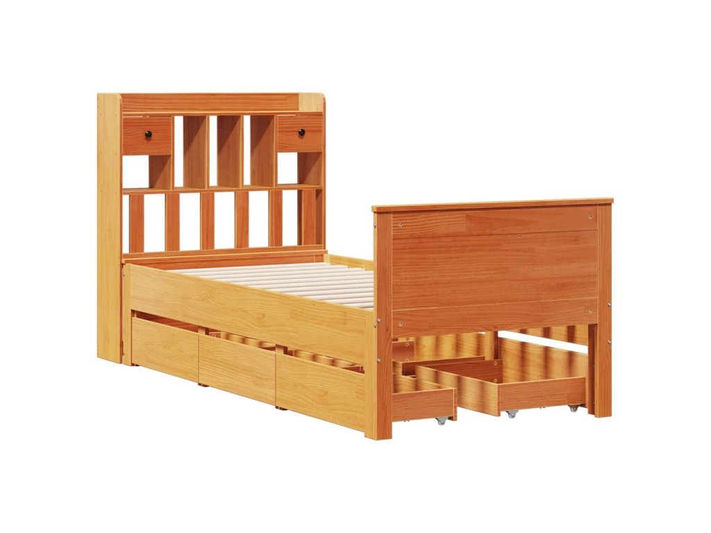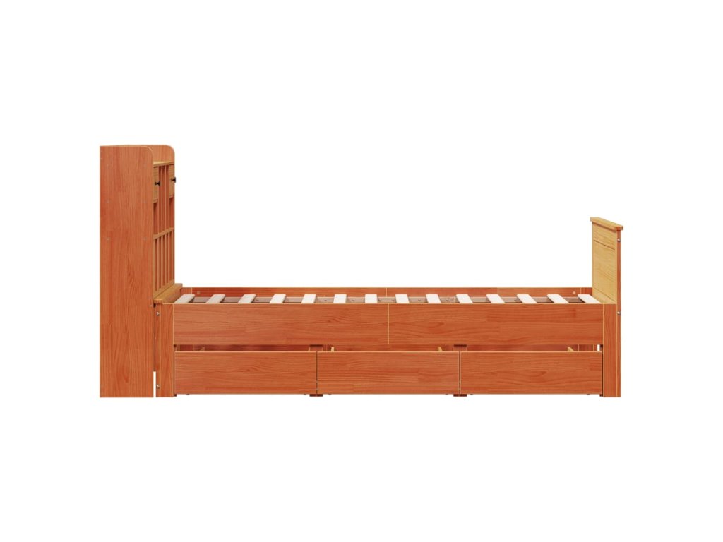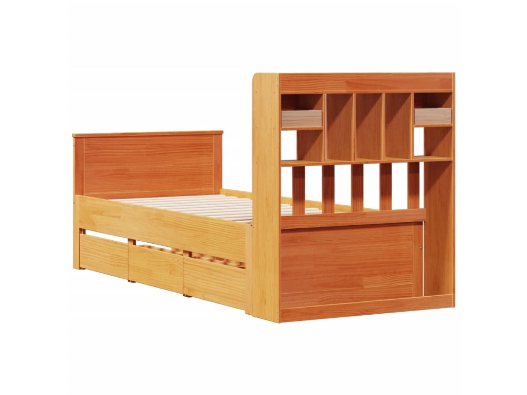 Postel s knihovnou bez matrace hnědá 75x190 cm masivní borovice 3308947