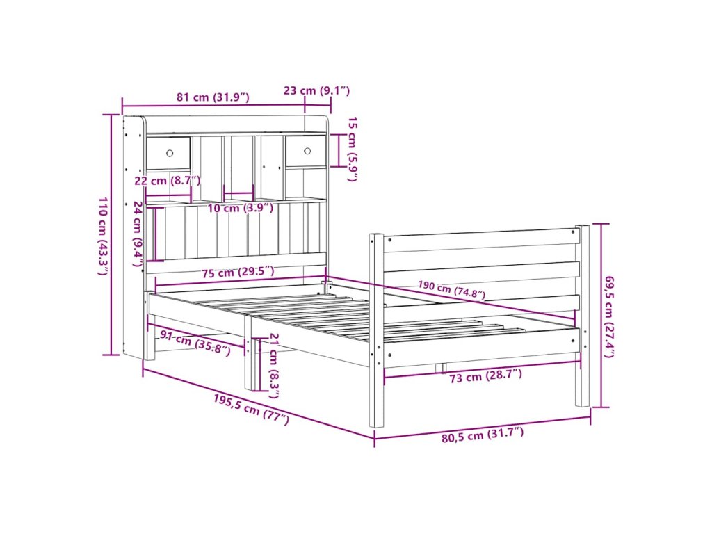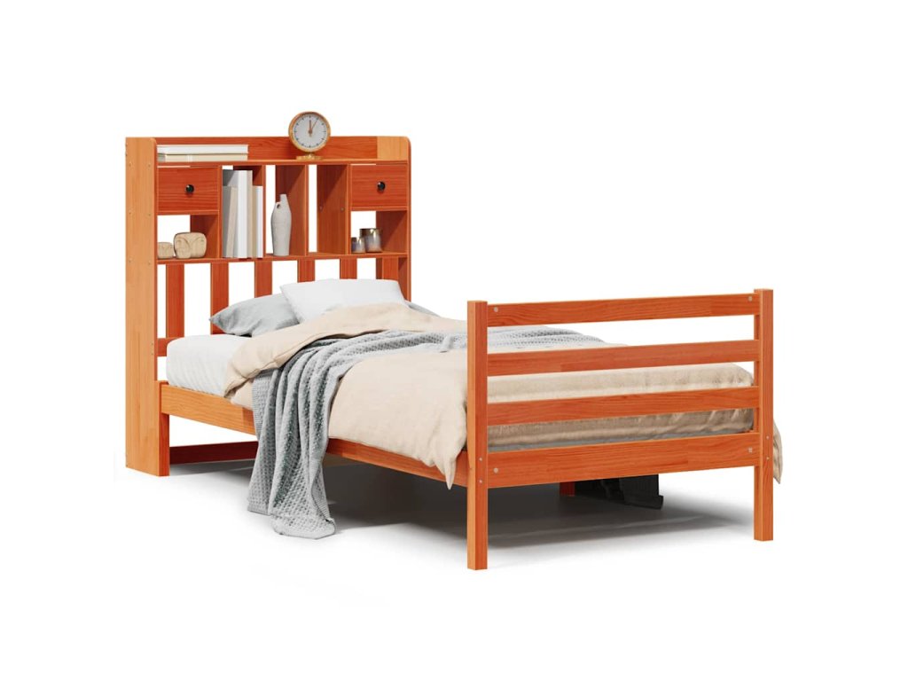 Postel s knihovnou bez matrace hnědá 75x190 cm masivní borovice 3321948