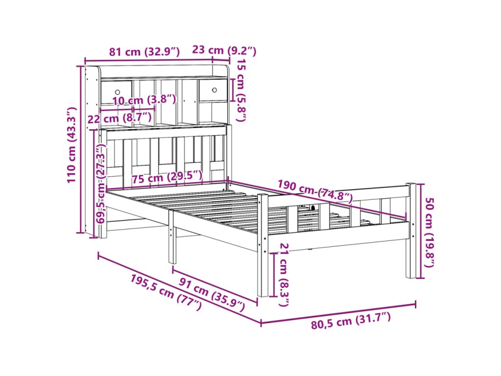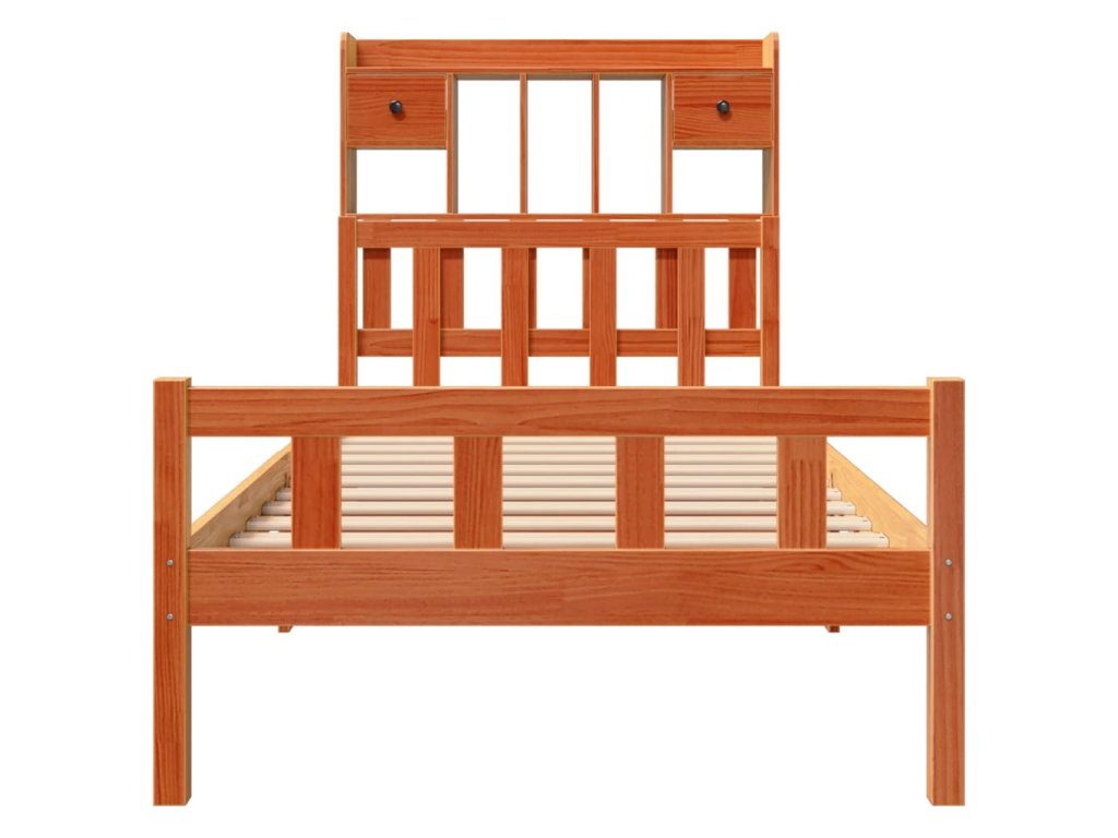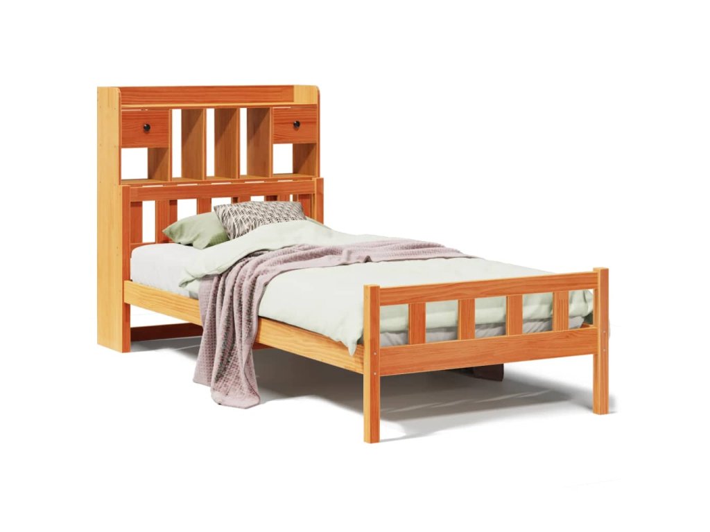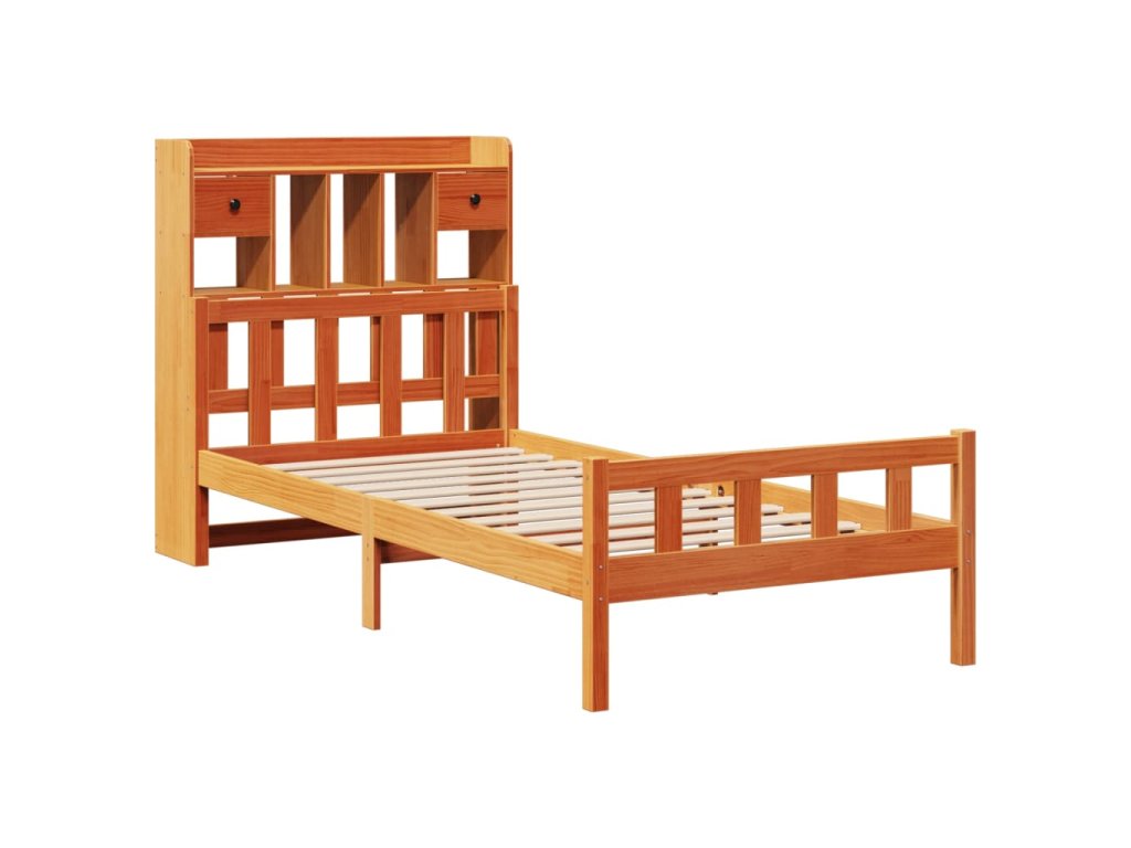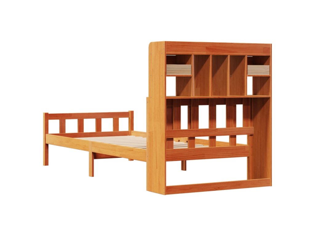 Postel s knihovnou bez matrace hnědá 75x190 cm masivní borovice 3322182