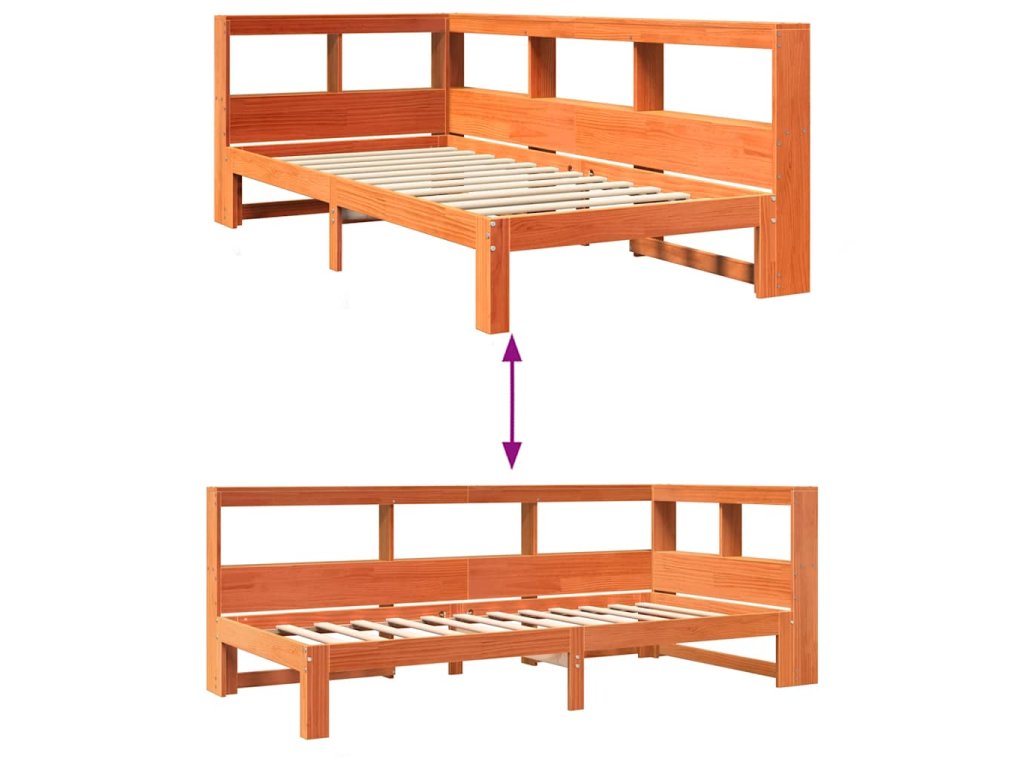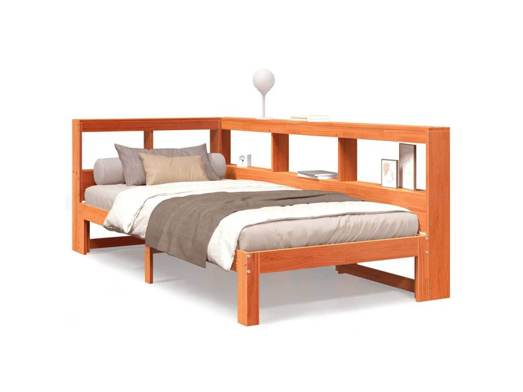 Postel s knihovnou bez matrace hnědá 75x190 cm masivní borovice 3324408