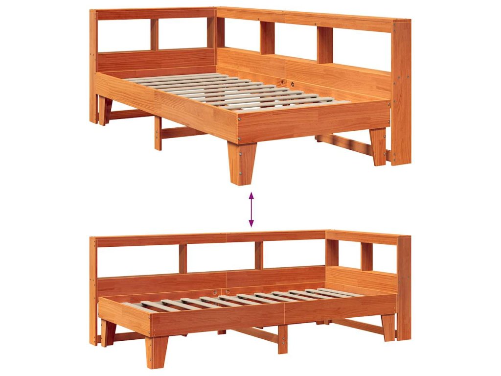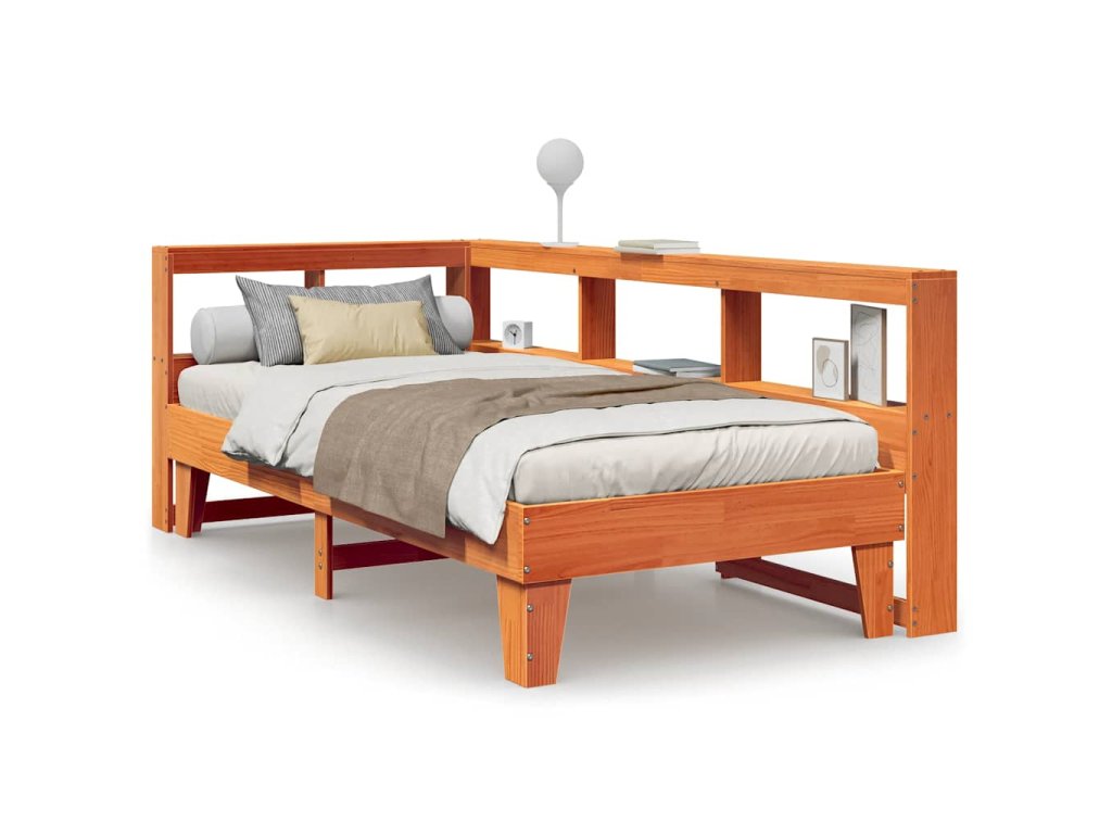 Postel s knihovnou bez matrace hnědá 75x190 cm masivní borovice 3324564