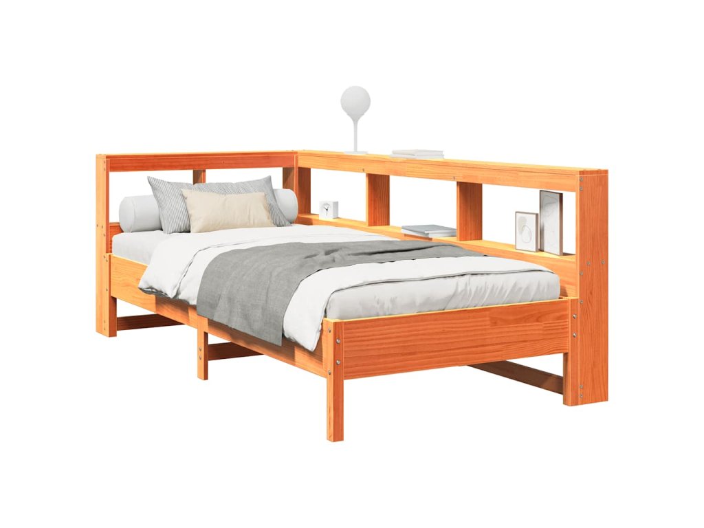 Postel s knihovnou bez matrace hnědá 90x190 cm masivní borovice 3324444