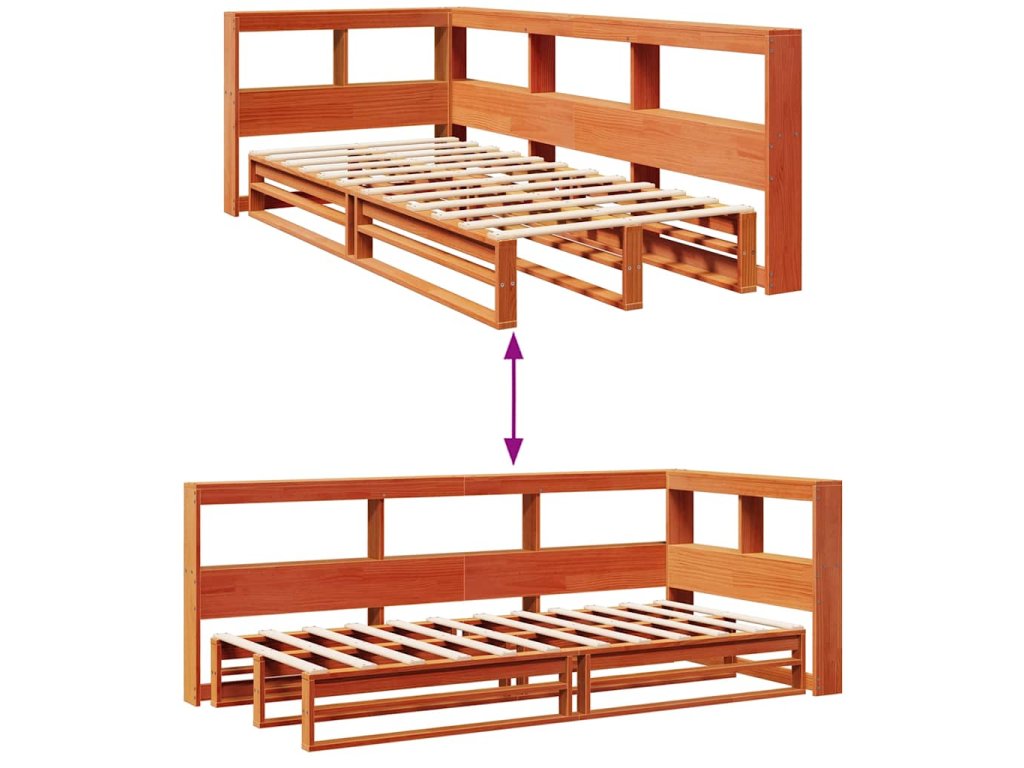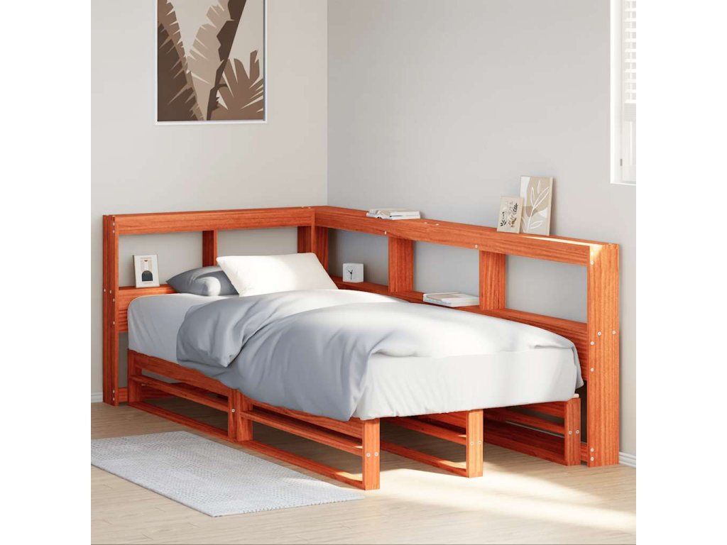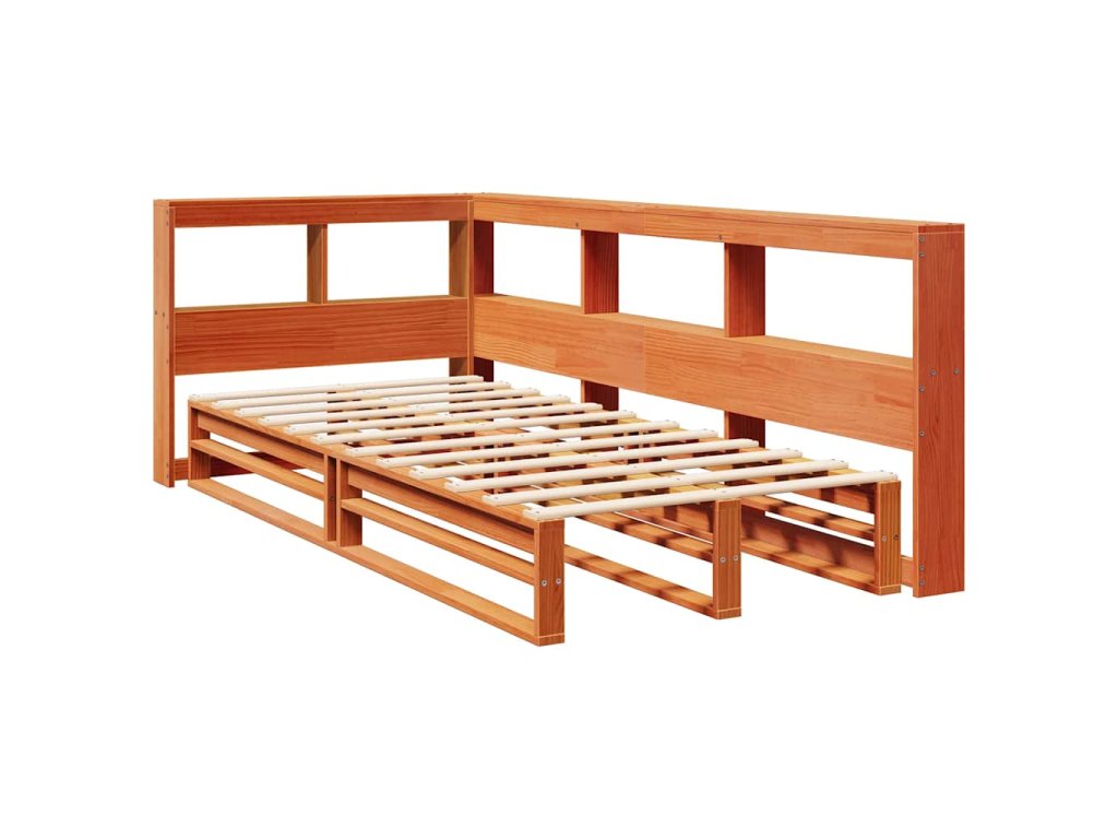 Postel s knihovnou bez matrace hnědá 90x200 cm masivní borovice 3324510