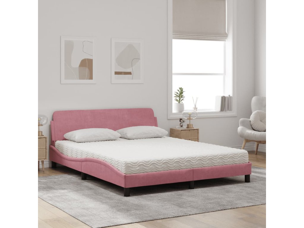 Postel s matrací Dover růžová 160 x 200 cm samet 3208436