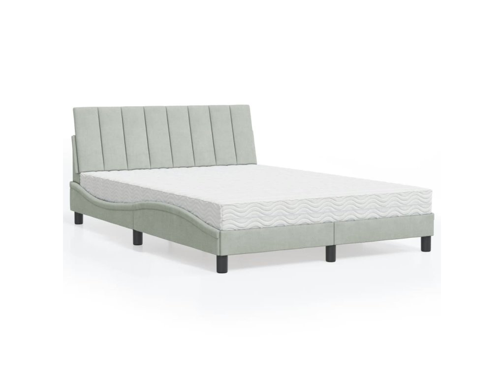 Postel s matrací Hanko světle šedá 140 x 200 cm samet 3208598