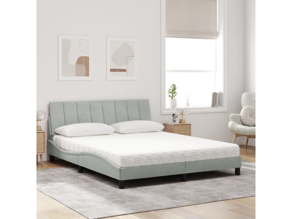 Postel s matrací Hanko světle šedá 160 x 200 cm samet 3208604