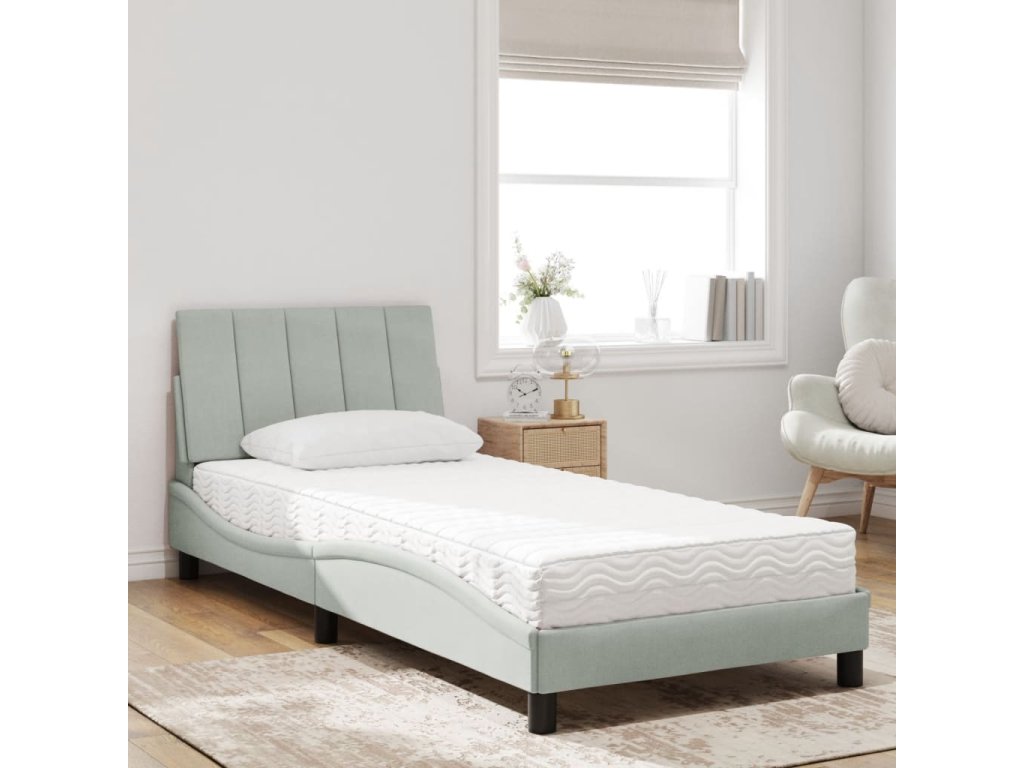 Postel s matrací Hanko světle šedá 90 x 190 cm samet 3208568