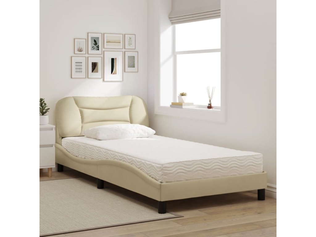 Postel s matrací Hvar krémová 100 x 200 cm textil 3208518