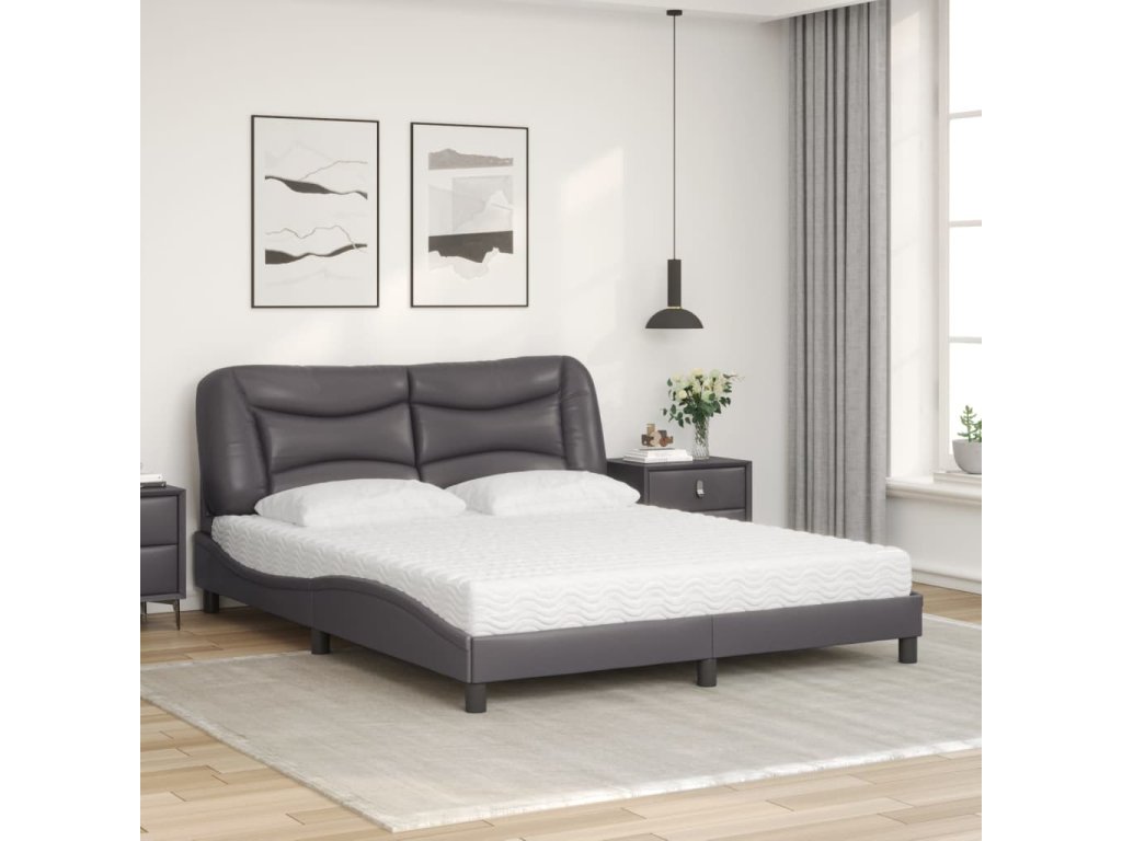 Postel s matrací Hvar šedá 160 x 200 cm umělá kůže 3208734