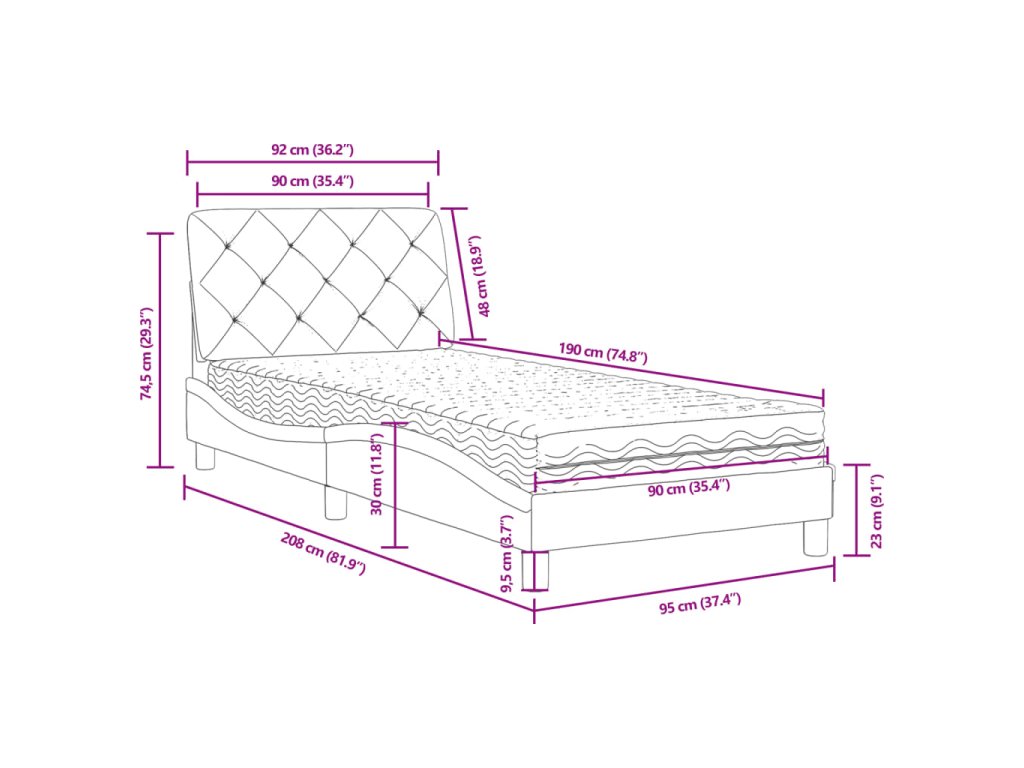 - Celkové rozměry: 208 x 95 x 74,5 cm (D x Š x V)
