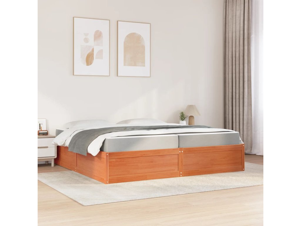 Postel s matrací voskově hnědá 200 x 200 cm masivní borovice 3281924