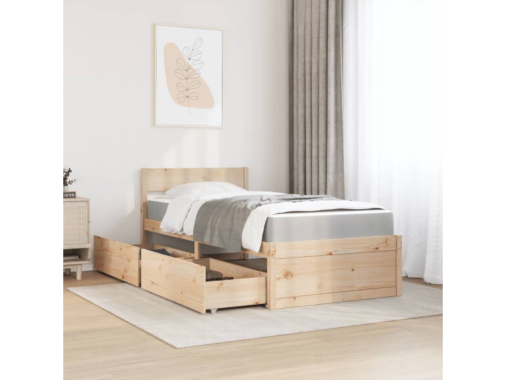 Postel se zásuvkami a matrací 100 x 200 cm masivní borovice 3281904