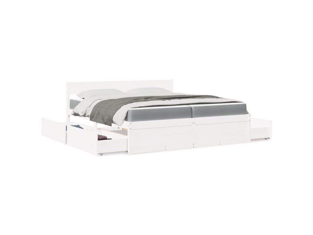 Postel se zásuvkami a matrací bílá 200x200 cm masivní borovice 3281887
