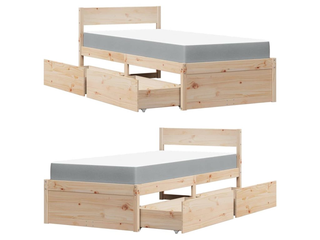 Postel se zásuvkami a matrací bílá 90 x 200 cm masivní borovice 3281907