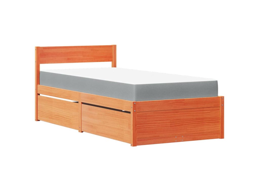 Postel se zásuvkami a matrací voskově hnědá 100x200 cm borovice 3281906