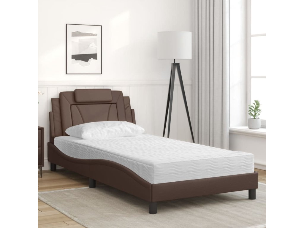 Postel Viana s matrací hnědá 100 x 200 cm umělá kůže 3208777