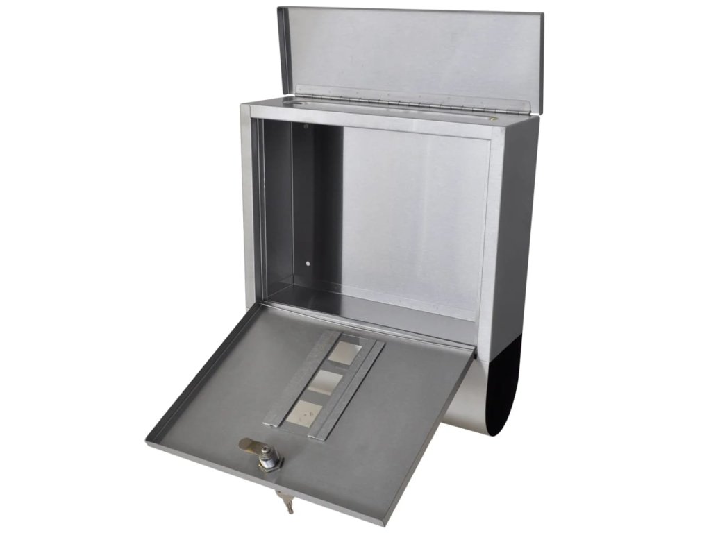 Tato poštovní schránka s úhledným moderním designem je vyrobena z trvanlivé nerezové oceli . Na schránce najdete štěrbinu na vhazování pošty , praktickou zámku se dvěma klíči , držák na noviny a tři malá okénka , přes které můžete zkontrolovat, zda se uvnitř nachází pošta . Tato kvalitní schránka se vám určitě bude hodit ! V balení se nachází poštovní schránka, 2 klíčky a montážní součástky .