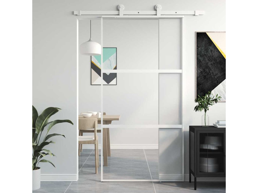 Posuvné dveře bílé 102,5 x 205 cm tvrzené sklo a hliník 155206