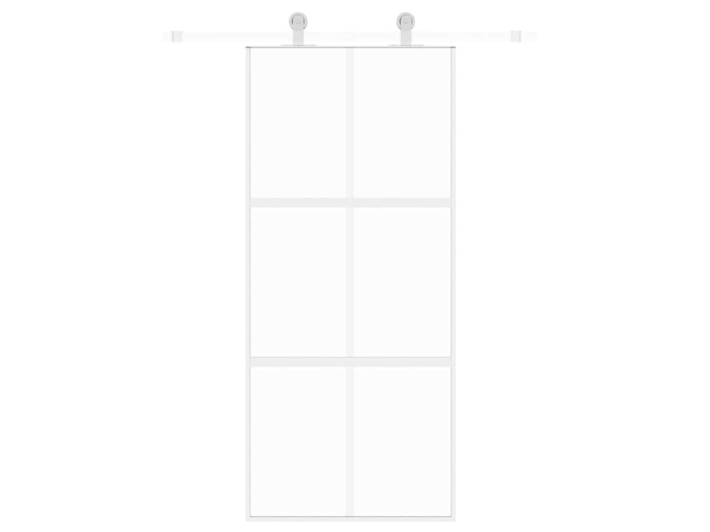 Posuvné dveře bílé 90 x 205 cm tvrzené sklo a hliník 155217
