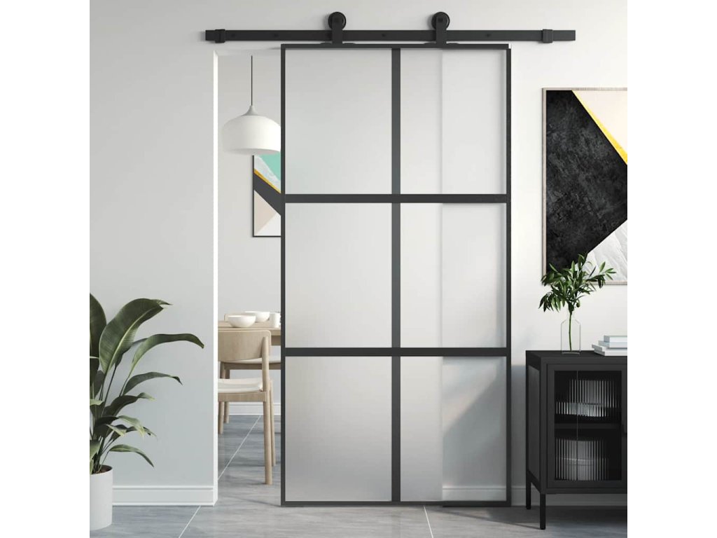 Posuvné dveře černé 102,5 x 205 cm tvrzené sklo a hliník 155209