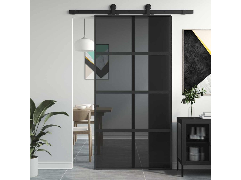 Posuvné dveře černé 102,5 x 205 cm tvrzené sklo a hliník 155227