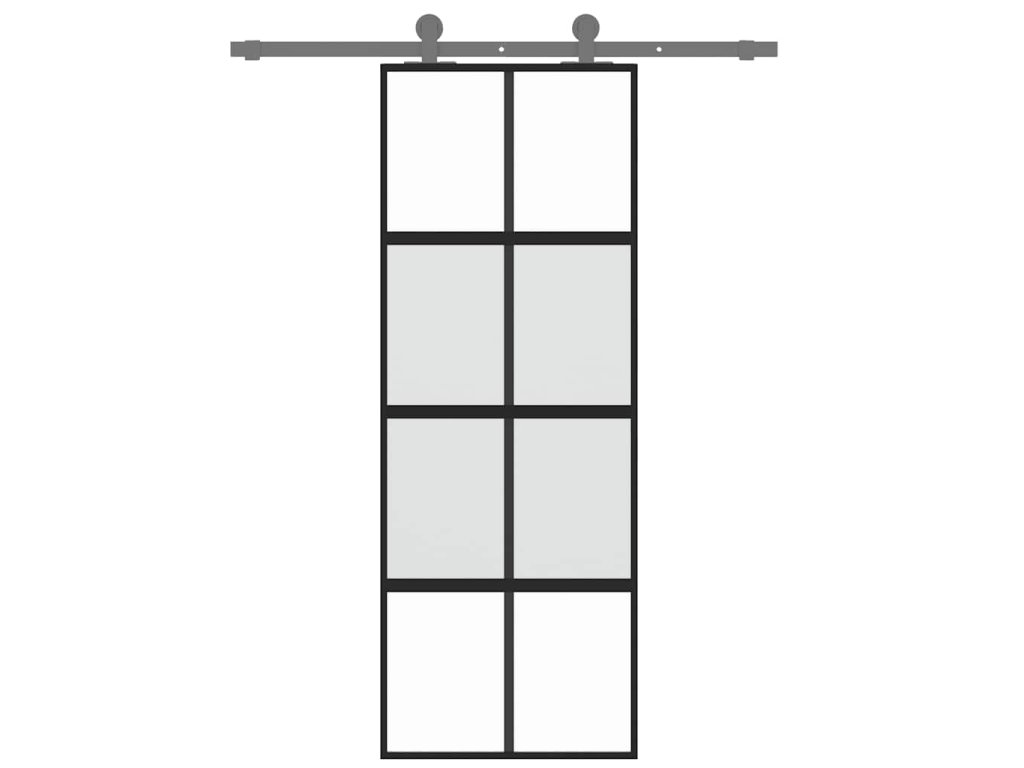 Posuvné dveře černé 76 x 205 cm tvrzené sklo a hliník 155222