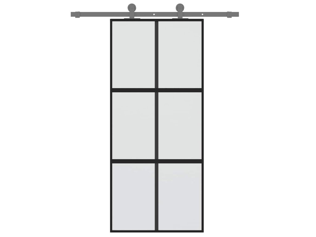 Posuvné dveře černé 90 x 205 cm tvrzené sklo a hliník 155208