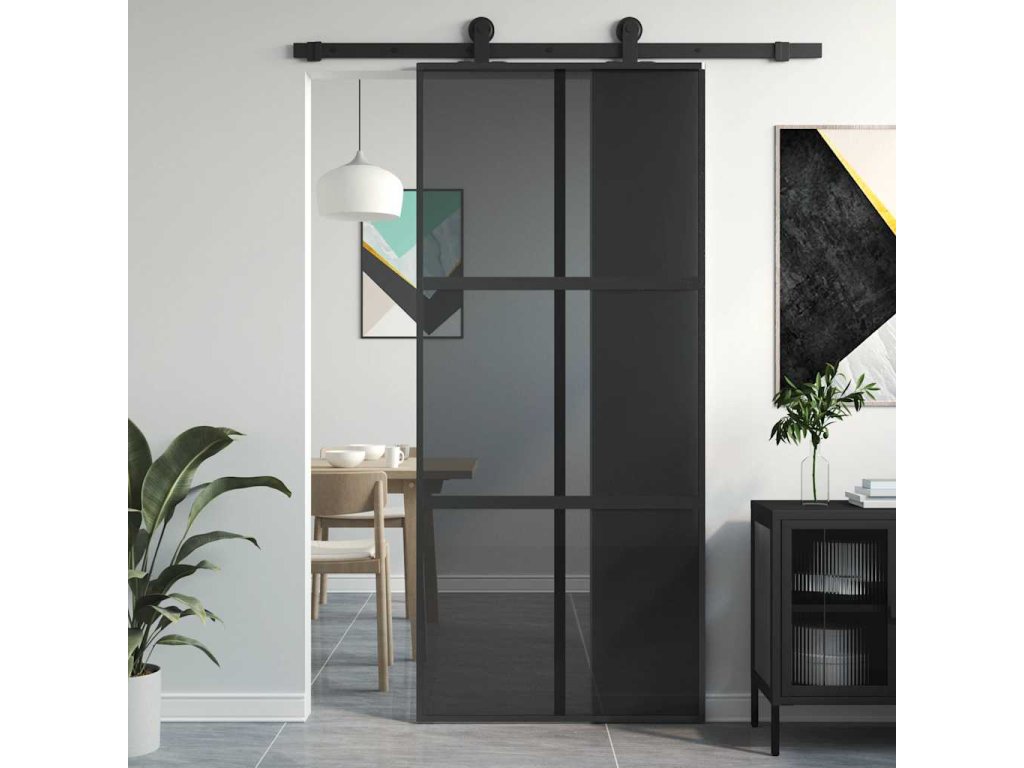 Posuvné dveře černé 90 x 205 cm tvrzené sklo a hliník 155214