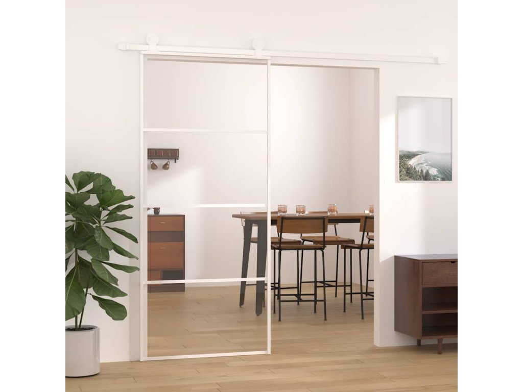 Posuvné dveře ESG sklo a hliník 90 x 205 cm bílé 151660