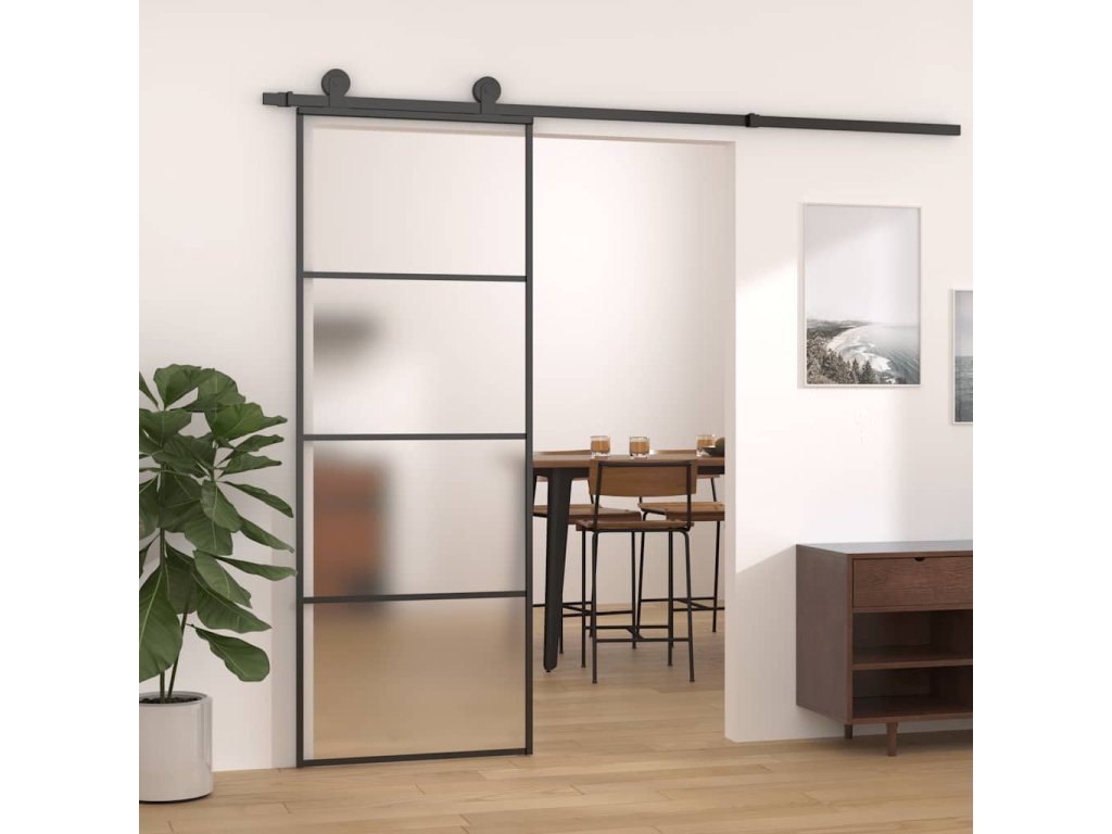 Posuvné dveře mléčné ESG sklo a hliník 76 x 205 cm černé 151655