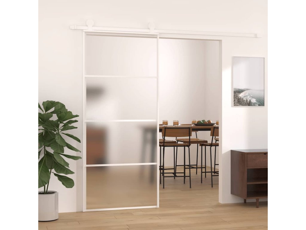 Posuvné dveře mléčné ESG sklo a hliník 90 x 205 cm bílé 151661