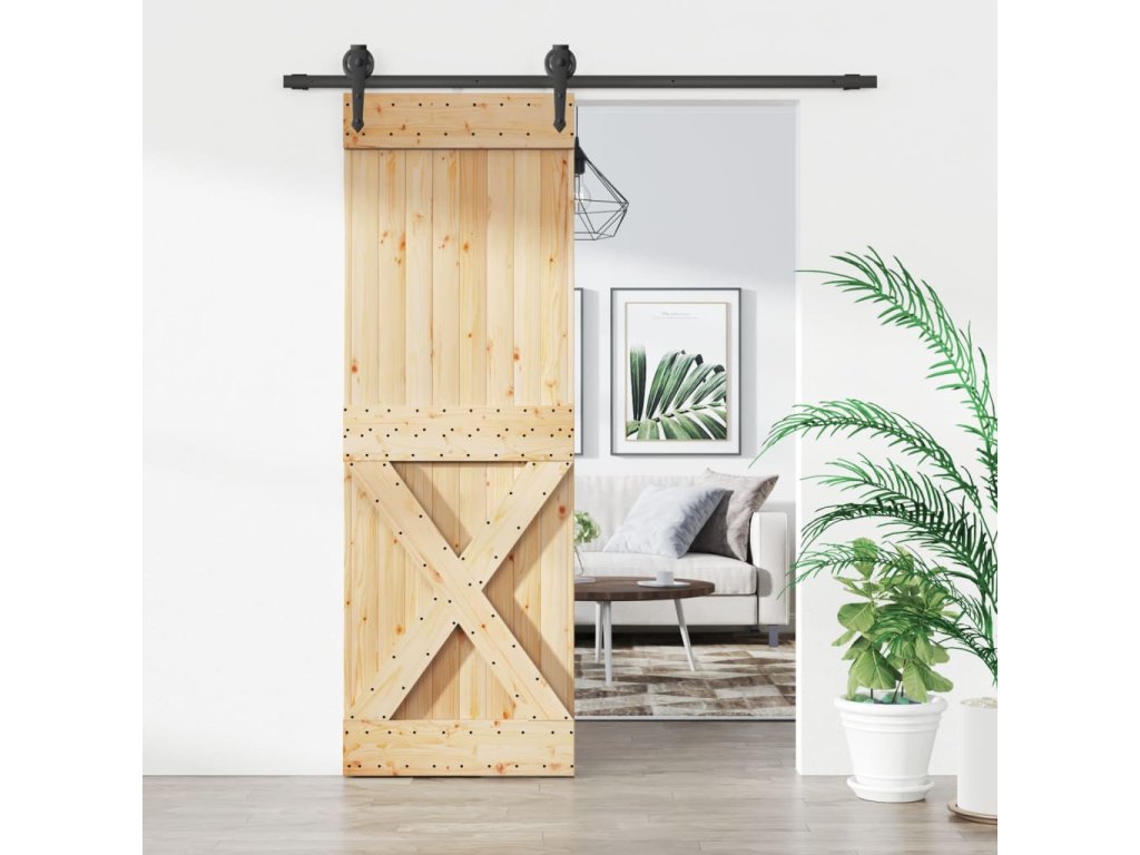 Posuvné dveře s kováním 70 x 210 cm masivní borové dřevo 3203207