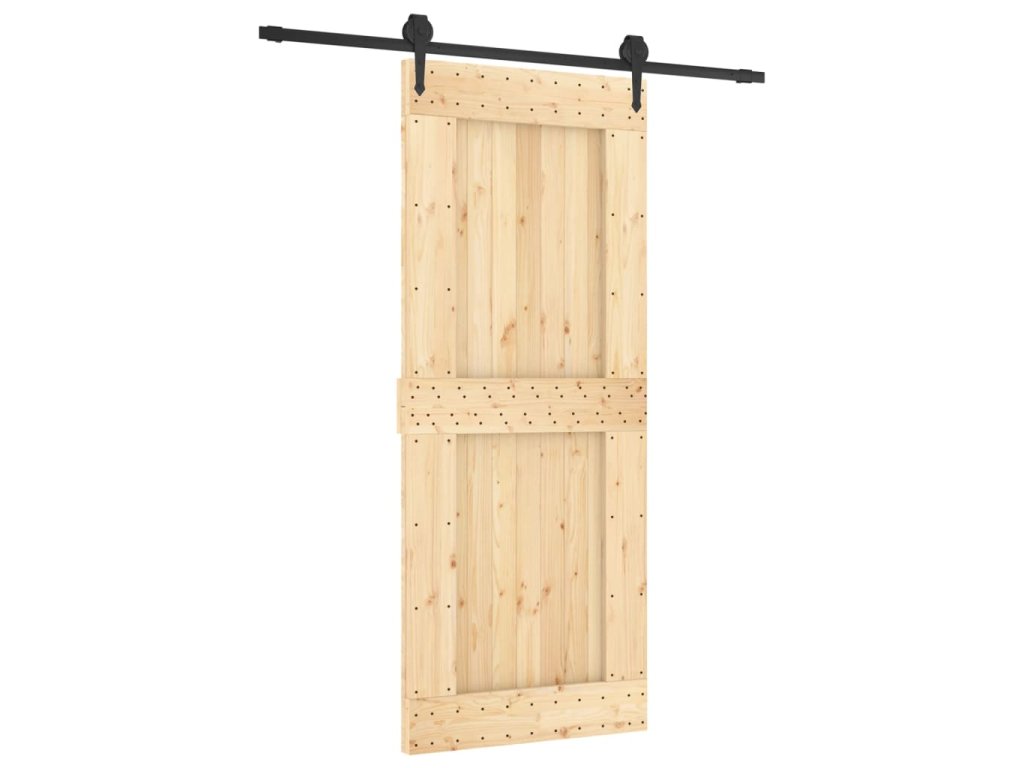Posuvné dveře s kováním 85 x 210 cm masivní borové dřevo 3203205