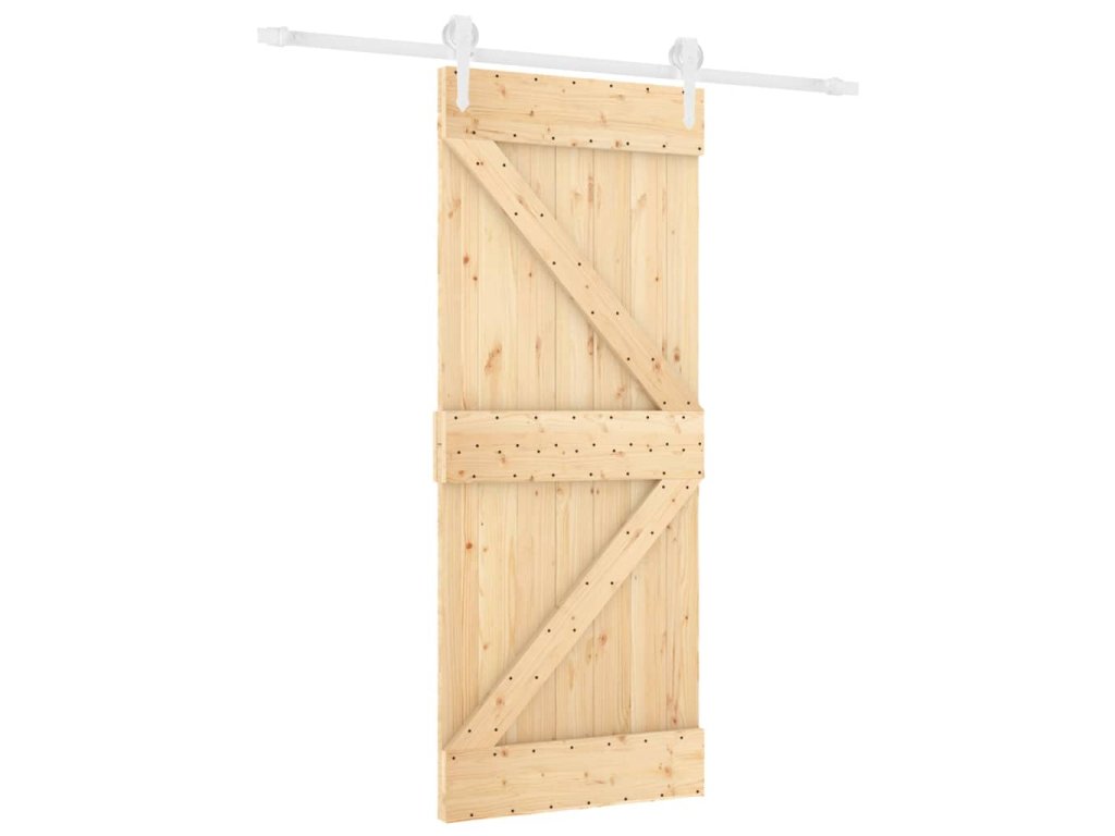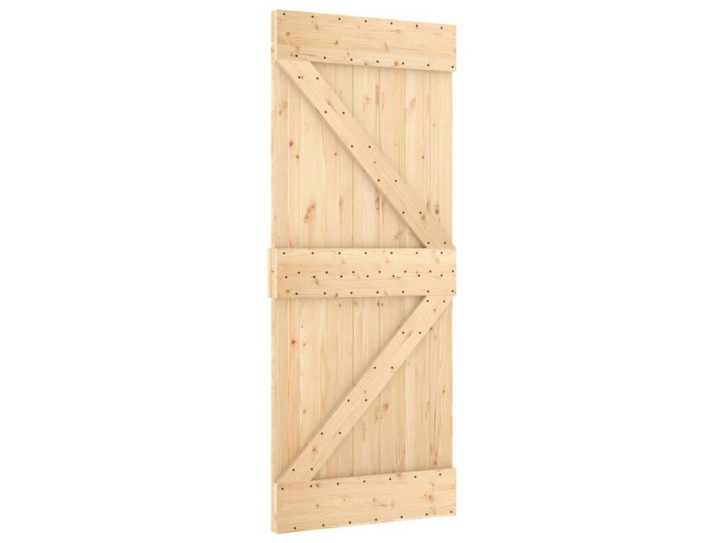 Posuvné dveře s kováním 85 x 210 cm masivní borové dřevo 3203212