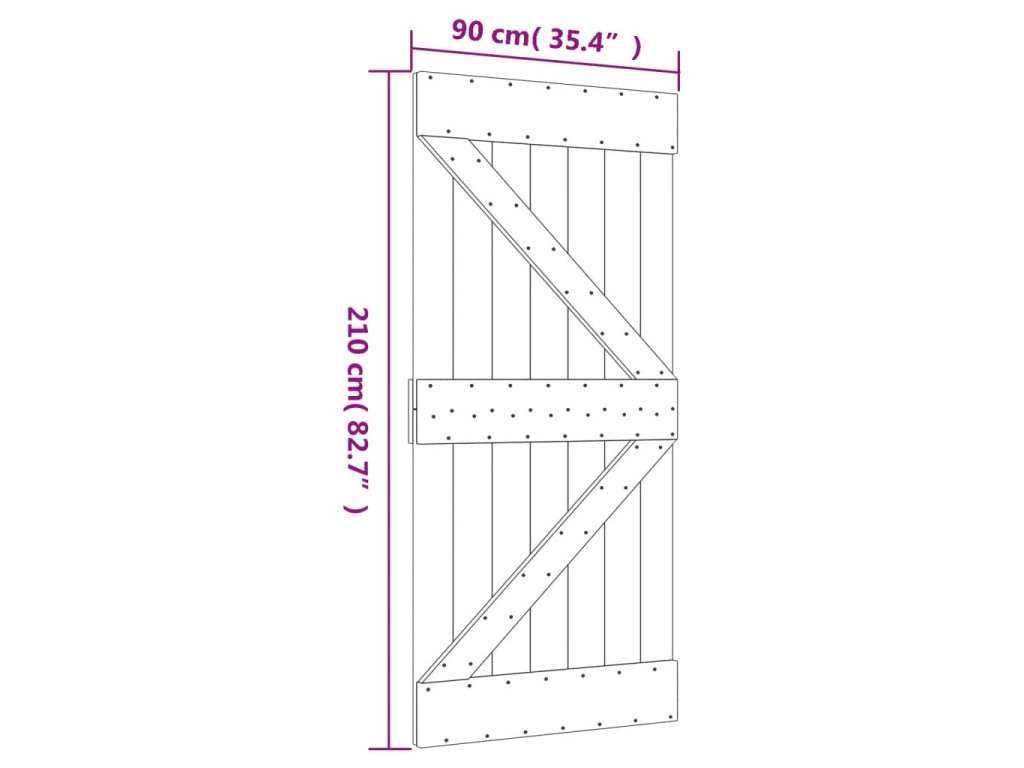 Posuvné dveře s kováním 90 x 210 cm masivní borové dřevo 3203177