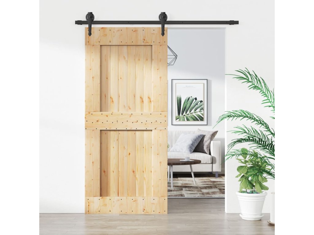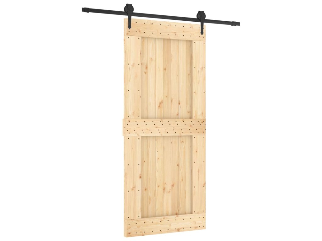 Posuvné dveře s kováním 90 x 210 cm masivní borové dřevo 3203206